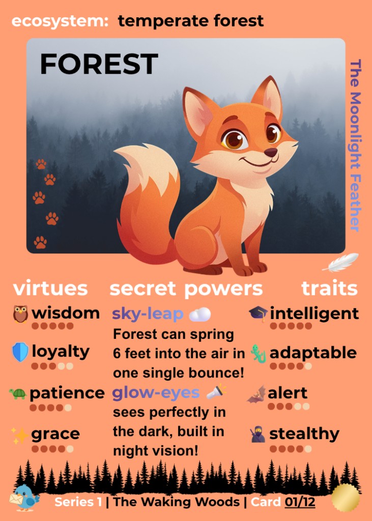 Month 1 stars Forest the fox — a keepsake card to treasure alongside the story.